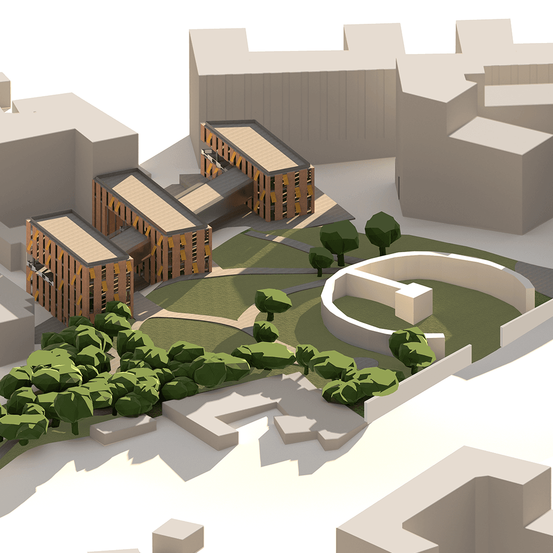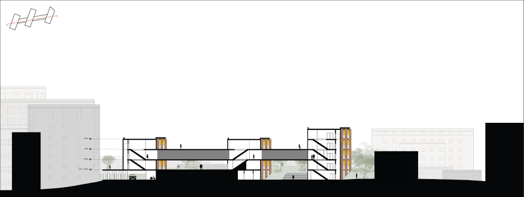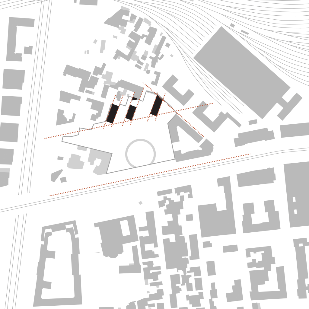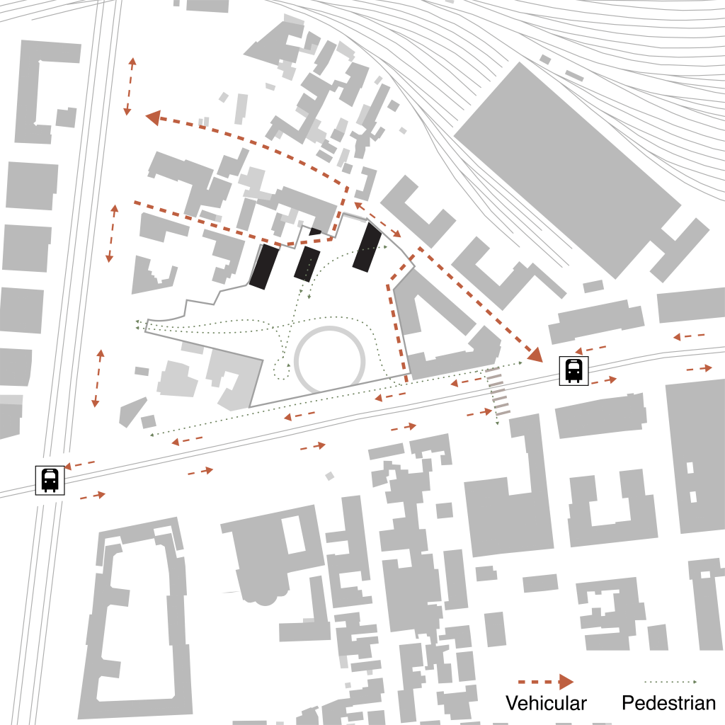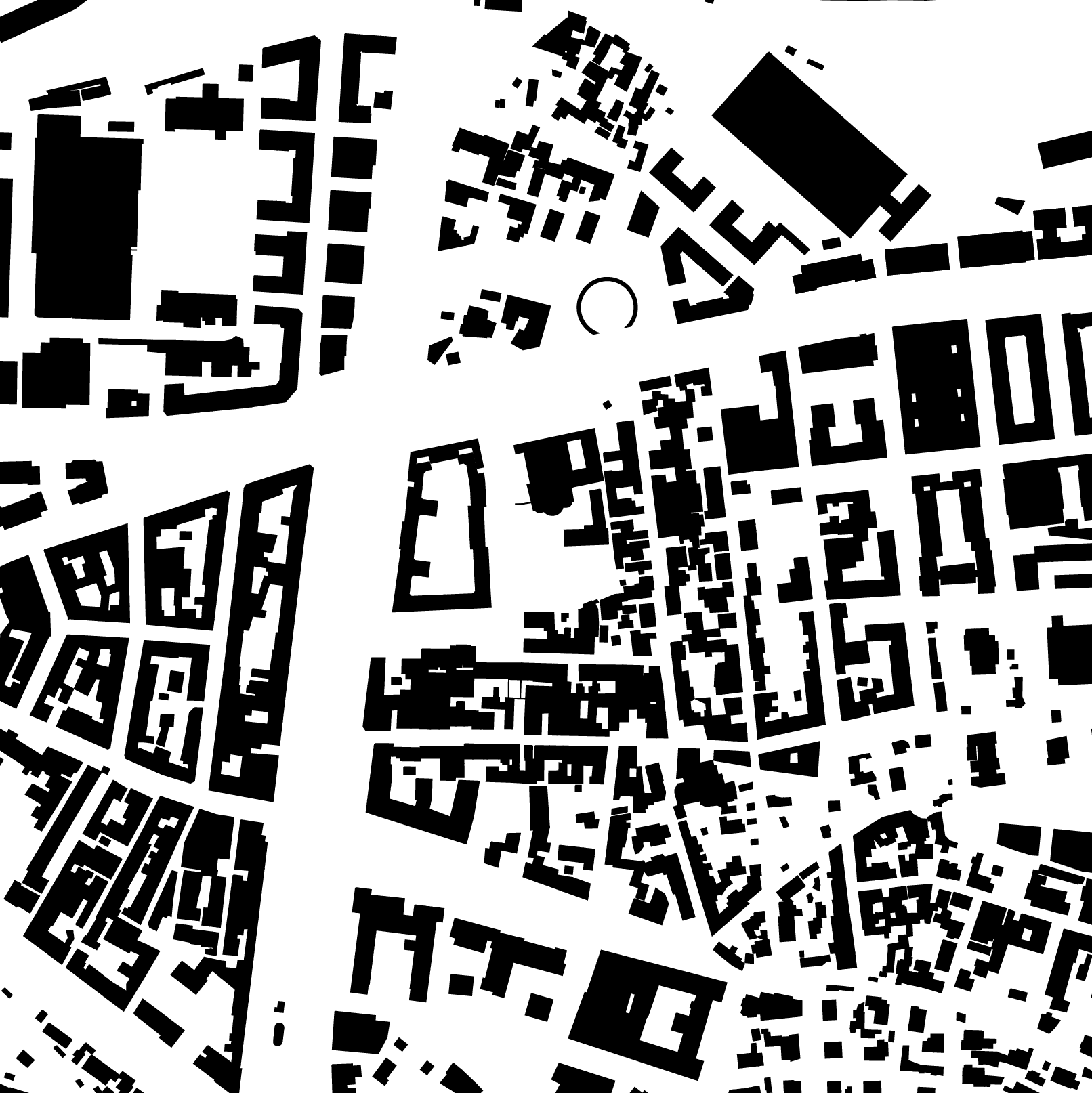 We began this project by creating a Nolli map and using it to bring the urban context of the site into high relief. The Nolli map also became a design tool as we used it to analyze how well our concept integrated with the urban fabric surrounding it.