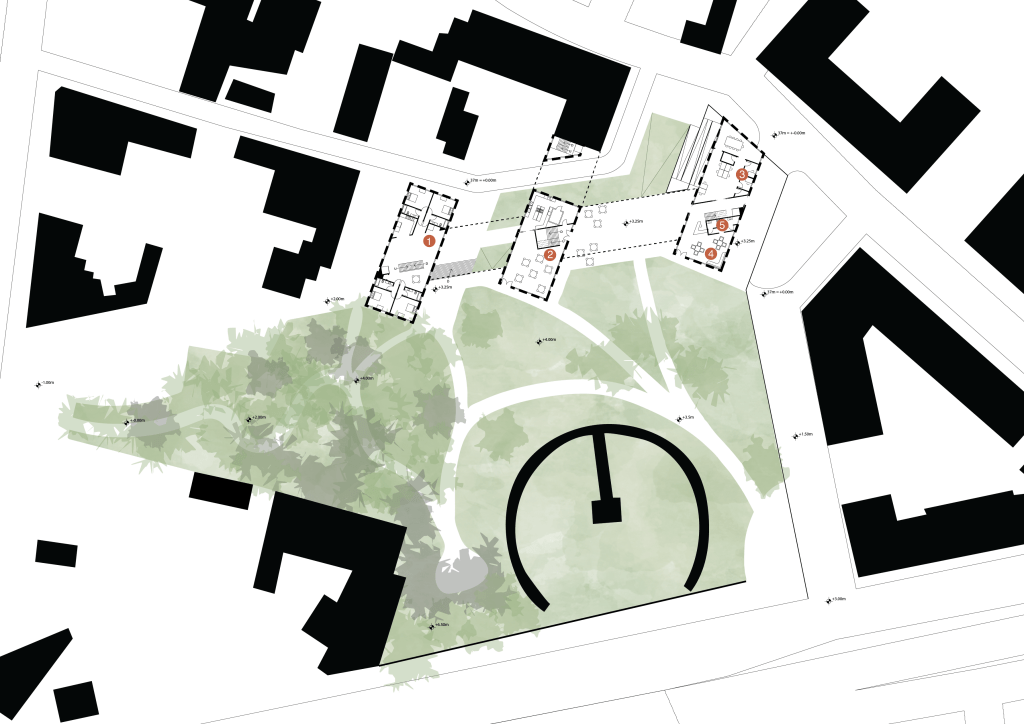The Torrione Praenestina is an ancient tomb from the time of the Roman empire. Located in the Pigneto neighborhood of Rome, the ruins and the park surrounding them are backed by a neglected junkyard which separates them from the apartment buildings beyond. This project would provide a connection between these two places, stitching together this tear in the urban fabric of the city.